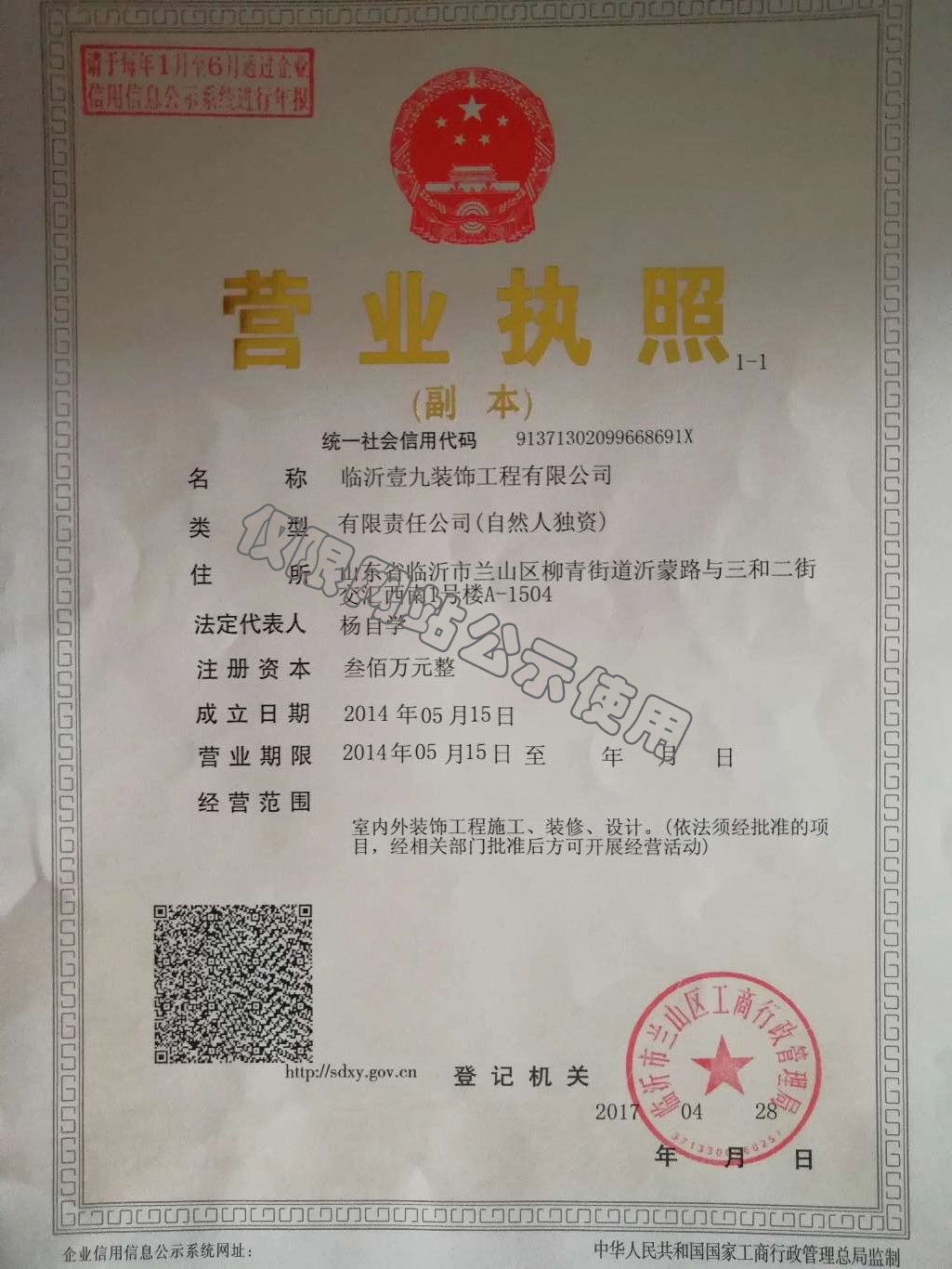 關于我們臨沂壹九裝飾設計有限公司專業的臨沂裝修裝飾公司,主要從事住宅、別墅、公寓、辦公、商業、酒店等場所的裝修設計和施工。力求為客戶提供專業化、人性化、個性化的裝修產品和服務。公司實行從咨詢開始,為您提供創意草案,測量設計,選材施工,裝飾配置的全程服務。將裝飾設計、工程施工、材料